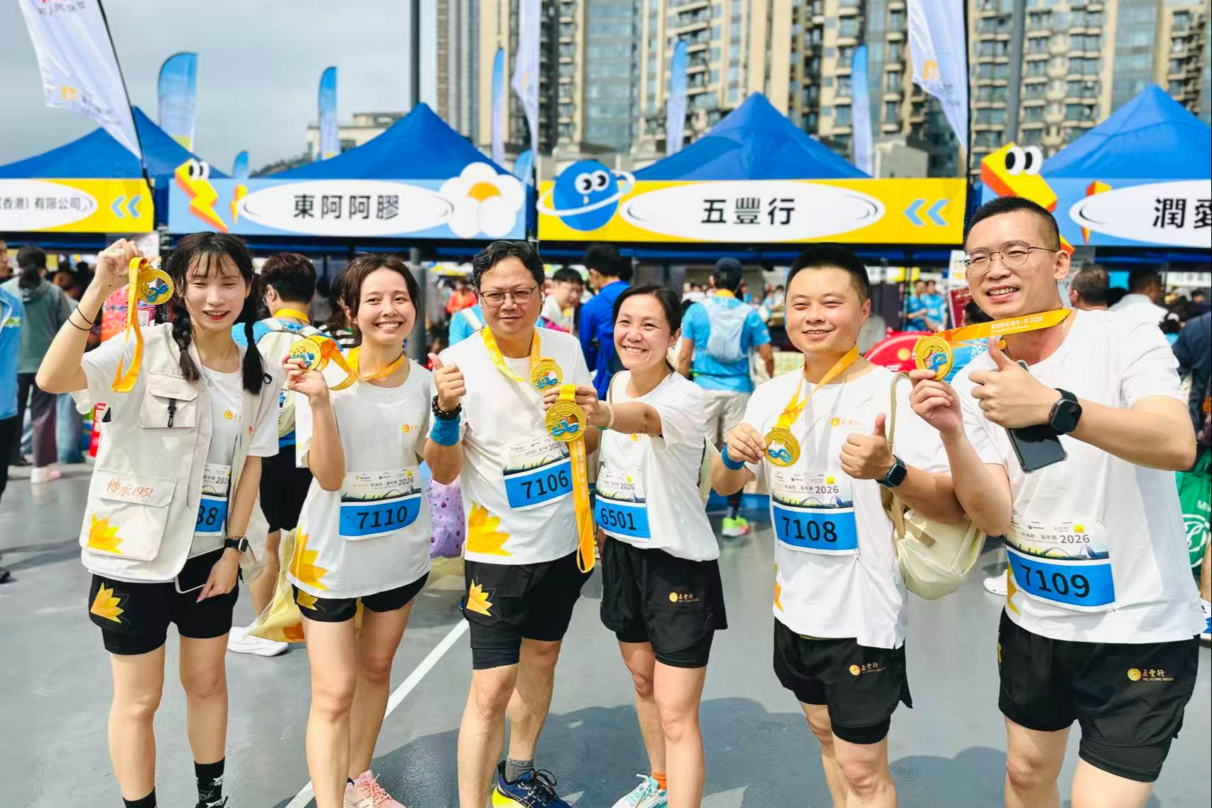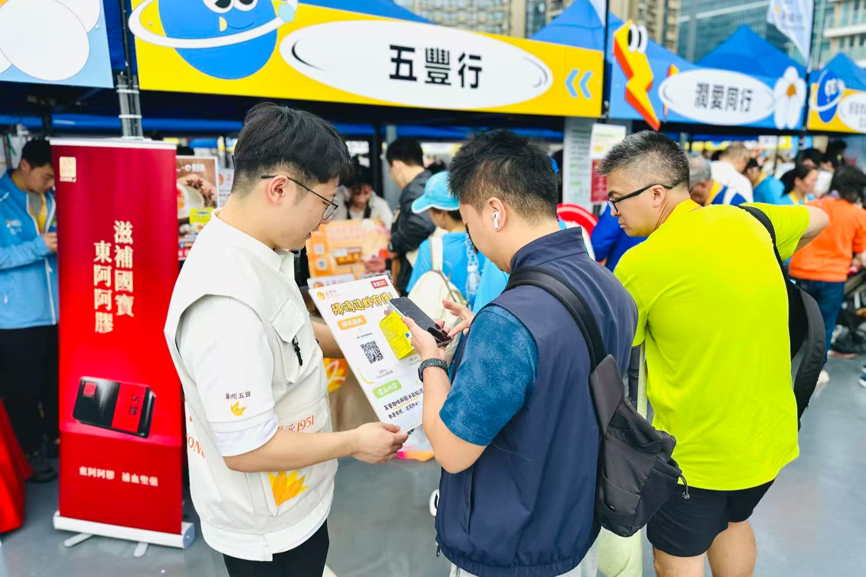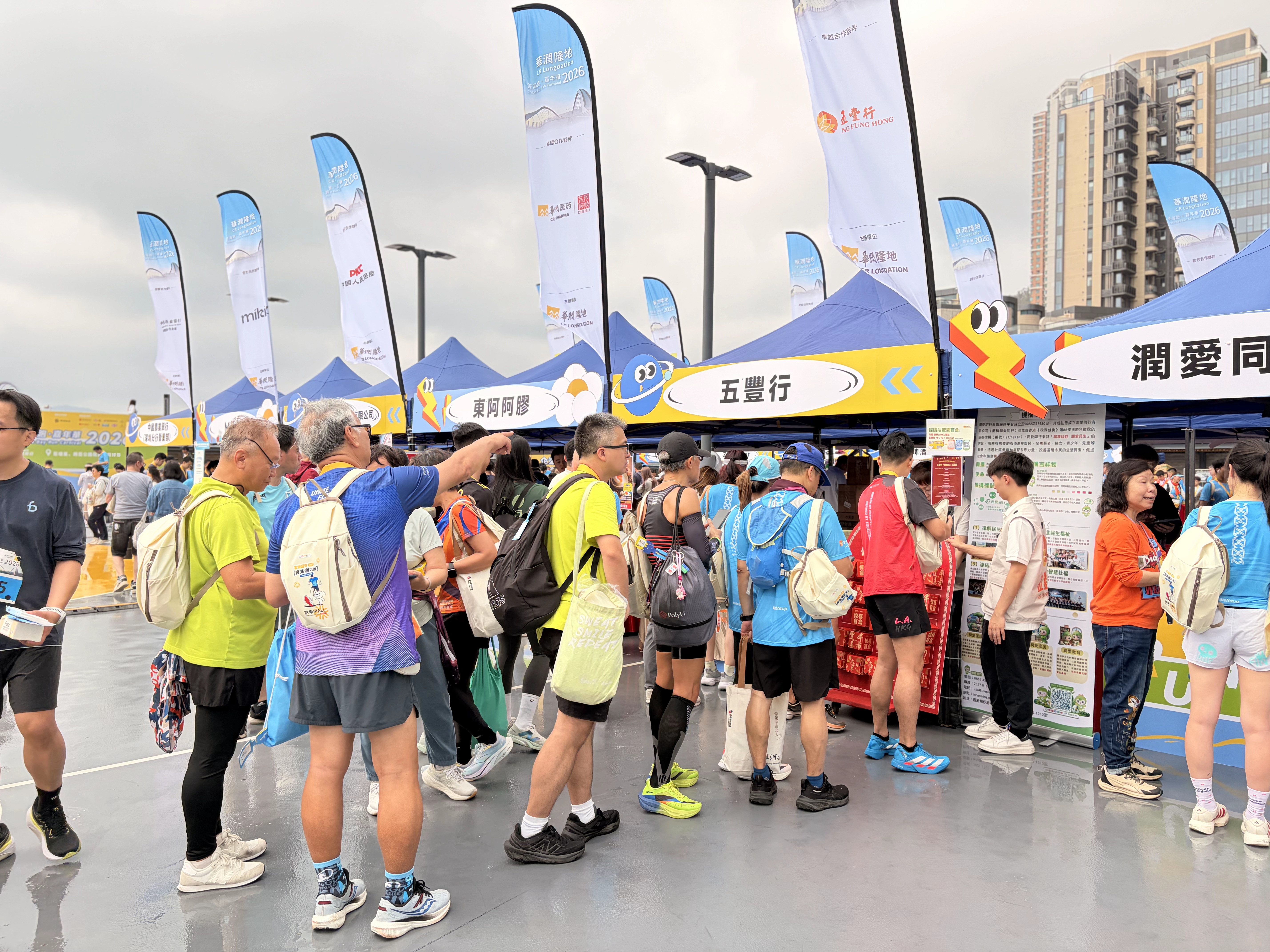 活动期间,五丰行组织动员全体员工参与企业跑、个人跑、宠物跑及家庭跑等多个组别赛事,在赛道上展现团结奋进的精神风貌。同时,公司组建义工团队,在活动现场设立主题展位,通过精心设计的互动环节,与社区居民及参赛者展开交流。展位设置“筷筷夹小游戏”及扫码互动环节,并免费派赠五丰行与华润江中联名推出的江中猴姑苏打饼干等产品,以食品为纽带传递健康生活理念,进一步拉近企业与社区的距离。