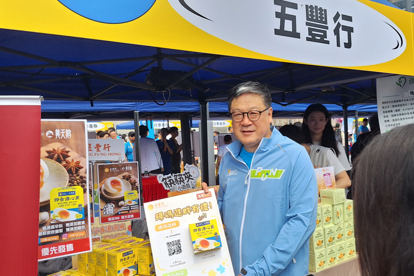 3月22日,五丰行秉持“引领健康生活 共创美好未来”理念,以“卓越合作伙伴”身份助力香港年度社区体育活动——华润隆地跨海跑・嘉年华2026。集团蓝屹副总经理莅临活动现场,参观五丰行展位,并与现场人员亲切交流互动,深入了解五丰特色产品。